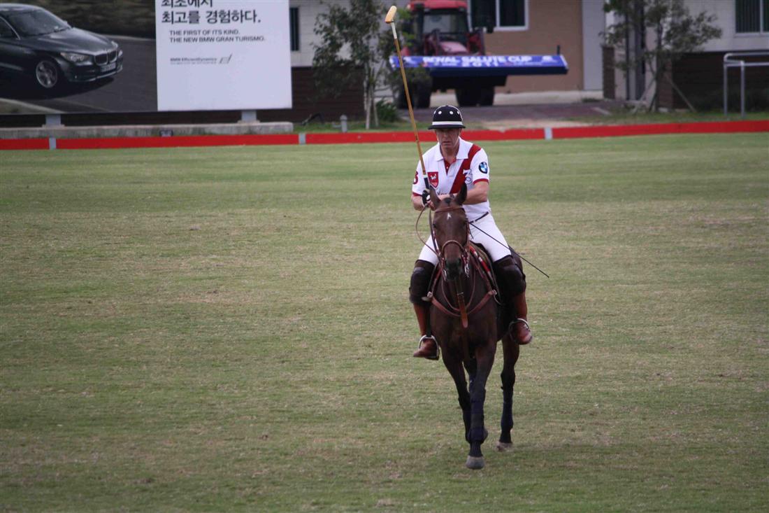 The Royal Salute team with Alex de Lisle (+3, UK), JB Lee (0) and club professionals Alecs (+2) and Noel Vecinal (0) from the  Philippines took a small 3-2 lead after 4 chukkas on the first day of play. Alex de Lisle played some exhilarating polo with fast runs along the crowded gallery in front of the clubhouse while tapping the ball mid-air. The Korean crowd unfamiliar with such ball wizardry was cheering and clapping in enthusiasm.